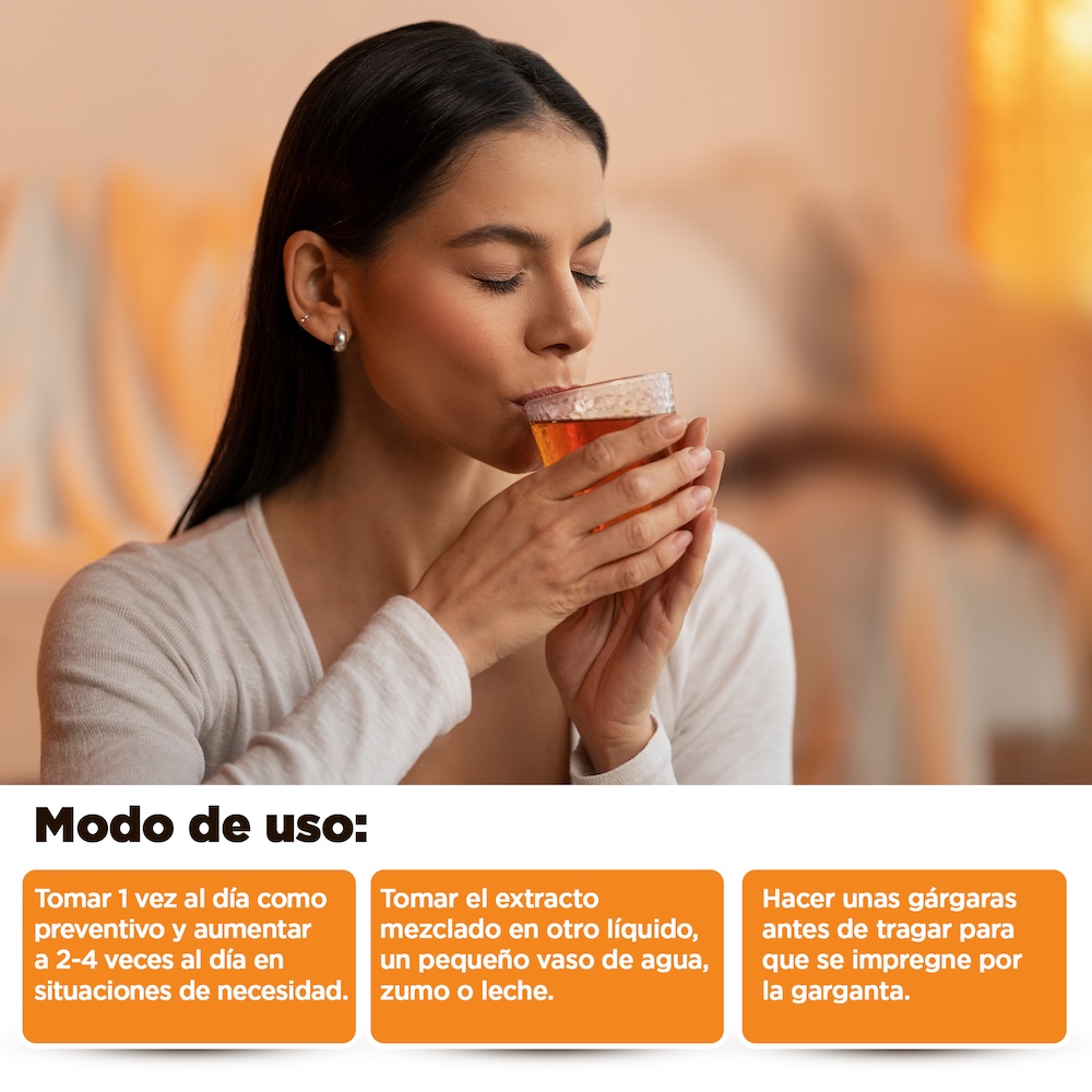Este extracto, procedente de apicultores comprometidos con el respeto por la colmena y el medio ambiente, es una opción natural y ecológica para la rutina diaria. Su composición incluye extracto concentrado de própolis, agua, glicerina y extracto de stevia, sin gluten ni azúcares añadidos.